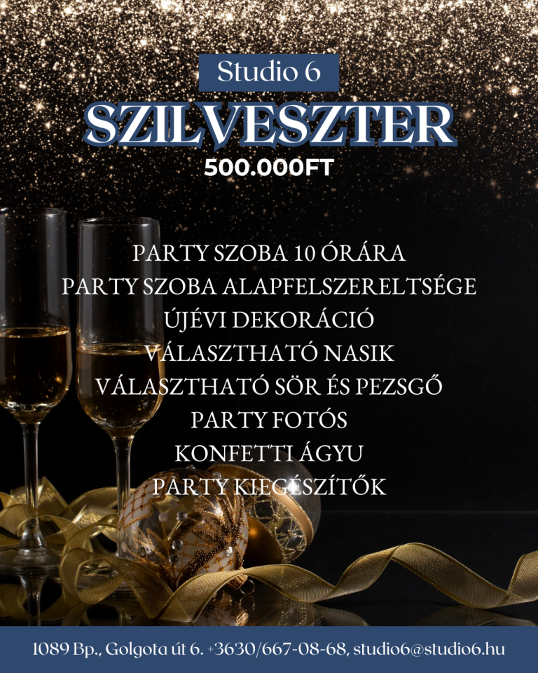 Szilveszteri ajánlatunk részeként dekorációval, nasikkal, italokkal és különböző party kiegészítőkkel és fotósunkkal várunk.