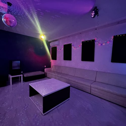 Mindegyik szobánk 30 négyzetméteres, hangszigetelt, 25 fő férőhelyes és klimatizált. Szobáinkban 2 karaoke mikrofon, 2 aktív hangfal, egy projektor, számítógép (YouTube prémiummal és karaoke programmal) található. Persze ez még nem minden, a legnagyobb kényelem érdekében minden szobában van saját hűtő és jéggép is. Tudjuk, hogy az igazi party élményhez elengedhetetlen a klasszikus disco gömb, így természetesen az is van, valamint party fények, UV led lámpa, füst- és buborékgép is. Ha pedig ez még nem lenne elég vagy nagyon kifáradtok az éneklésben és már hangotok sincs, váltsatok társasokra, ivós játékokra, csatlakozzatok az ingyenes wifi-re és osszátok meg a buli élményeit!